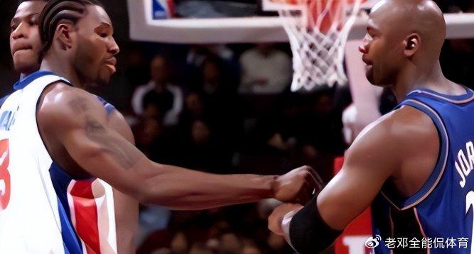 本华莱士是蓝领中锋极致代表,他是历史上唯一落选秀进入名人堂球星。华莱士也是矮个中锋,他说自己身高2米06,这么矮还能拿篮板王和DPOY确实不易。他跟奇才乔丹合影,华莱士真跟乔丹几乎一样高。乔丹奇才时期估计身高还缩水了,那么乔丹1米98身高对比下,华莱士也就刚还2米出头,估计当初落选,也跟自己身高有关系。